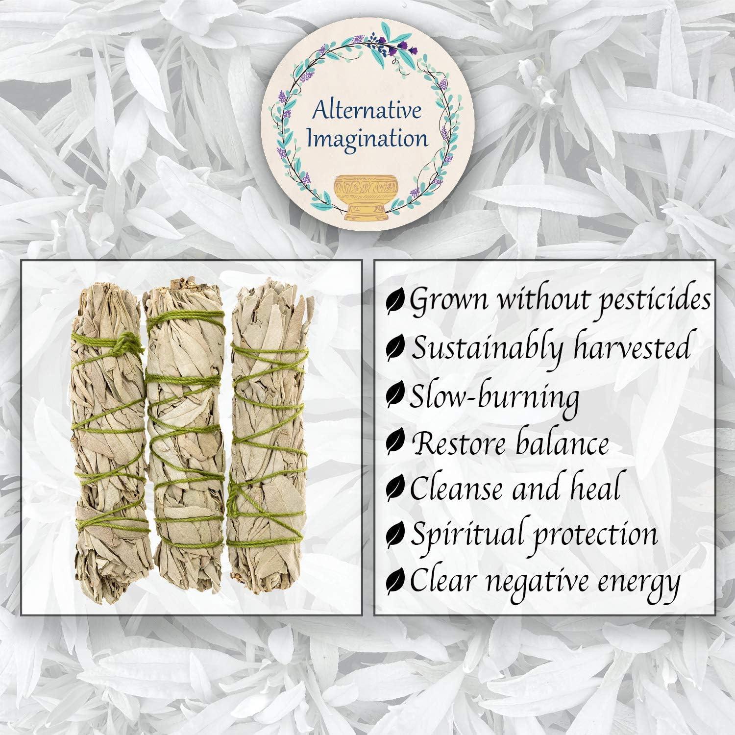Alternative Imagination California White Sage Smudge Sticks – 3-Pack of 6-Inch Bundles for Home Cleansing,Energy Clearing, Meditation, Witchcraft, Spiritual Gifts,Altar & Smudging- Packaged in the USA(3 Pack – 7 Inch)