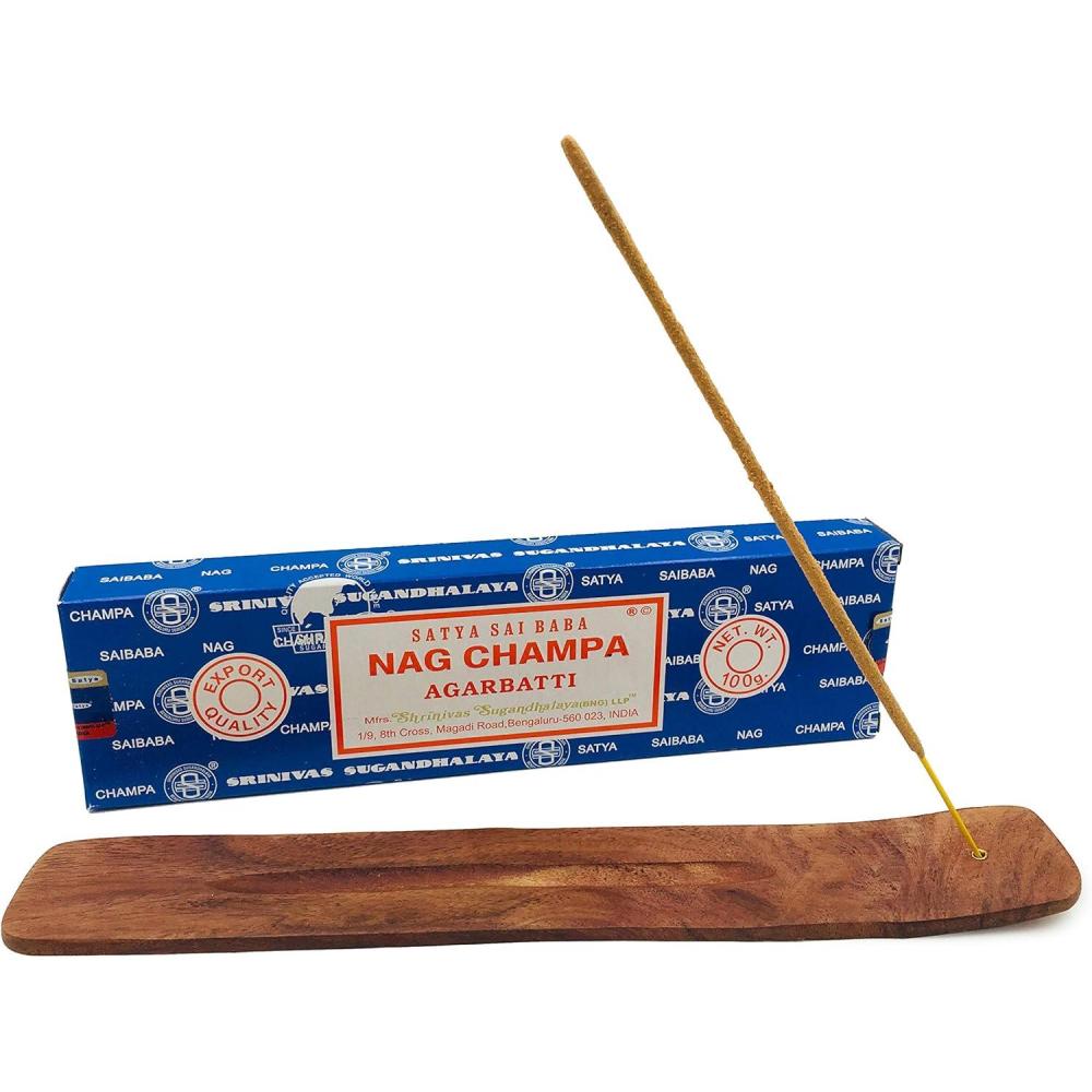 Fill your home with the calming fragrance of authentic Satya Sai Baba Nag Champa incense, burning from a simple, yet elegant incense burner holder. This warm, sweet, and spicy aroma can help you feel at ease after a long day, during prayer, meditation, or yoga.